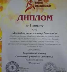 Сосновка айылындагы «Dance Mix» ыр жана бий ансамбли республикалык «Бийчи жылдыздар» сынагында кыргыз бийи номинациясы боюнча 1-орунду багындырды.